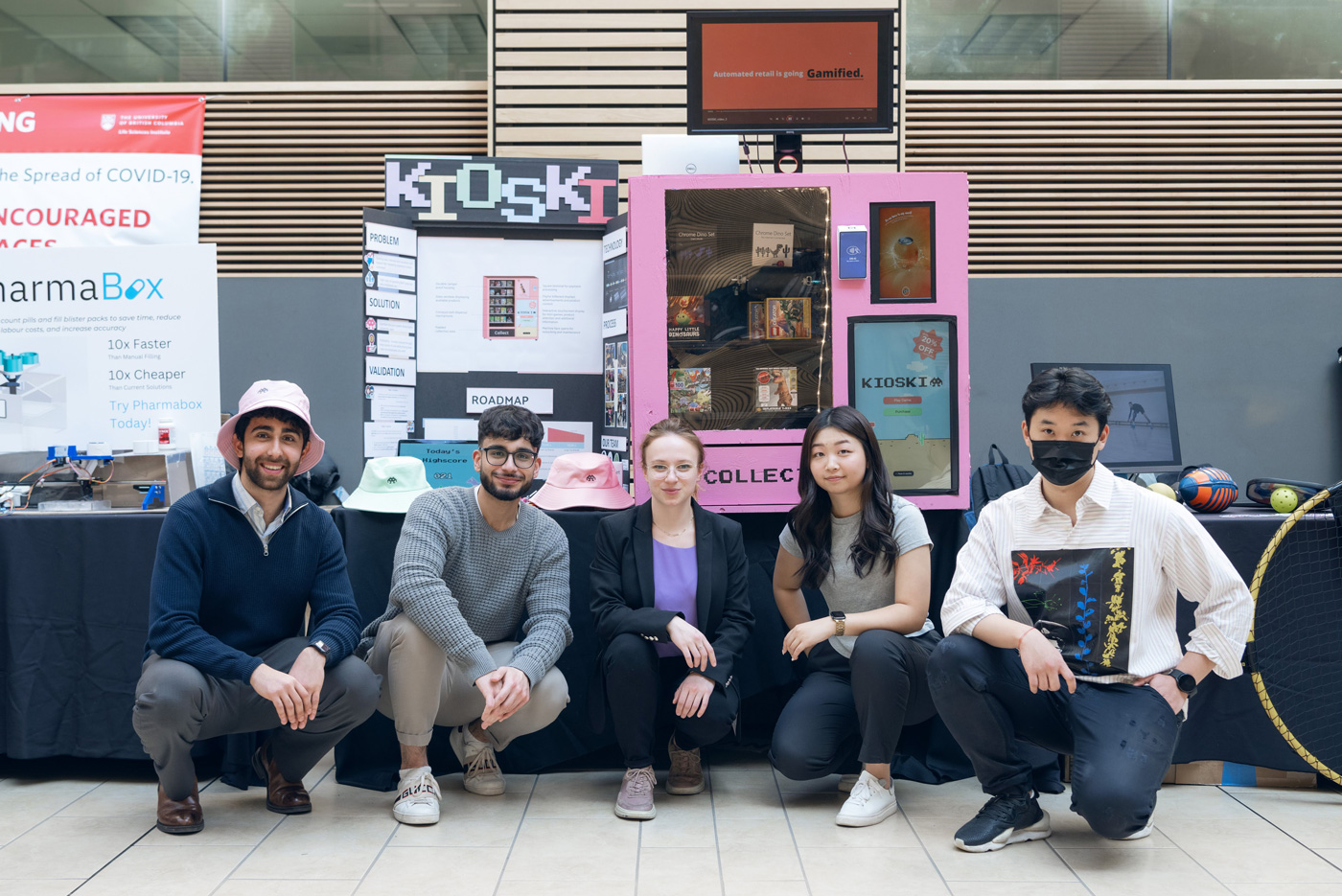Kioski creators and UBC students (pictured from left to right): Parsa Khodabakhshi, Ranvijay Mdahar, Natalie Tsvetkov, Lisa Wang, and Martino Kang. Team member not pictured: Sheena Cheng.
