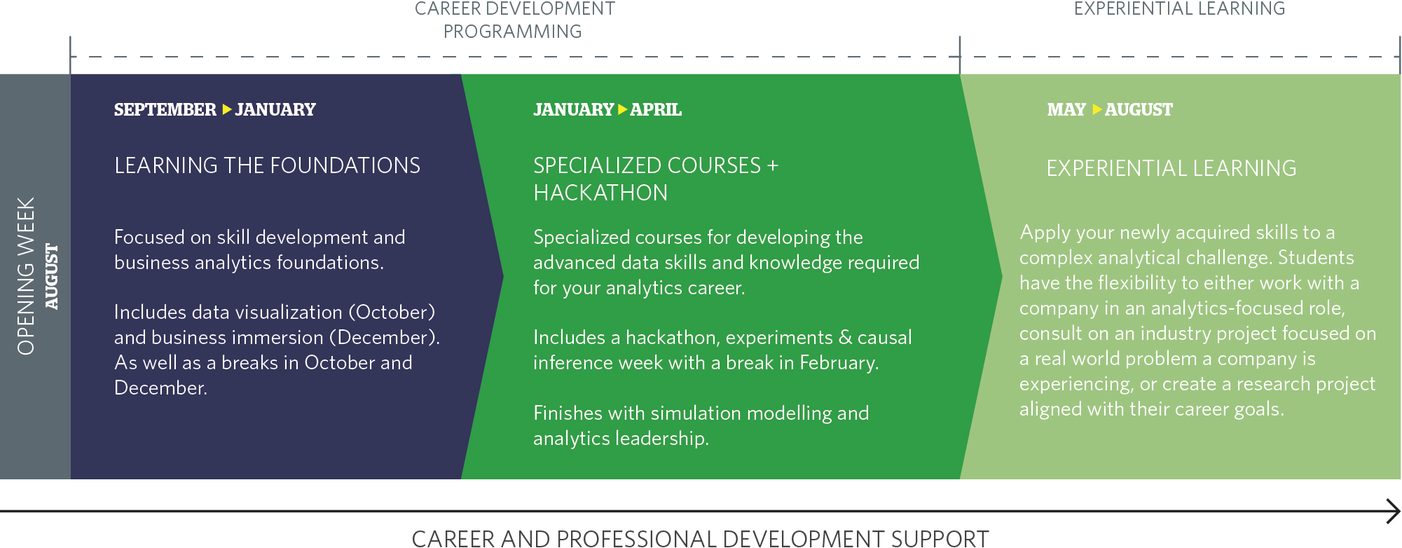 Career development opportunities are woven throughout your MBAN journey to help you shape your career and develop your market skills.
