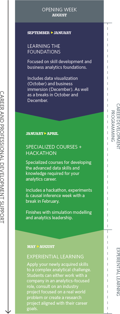 The program involves a comprehensive, intense curriculum that will give you a strong foundation to make informed data-driven business decisions.